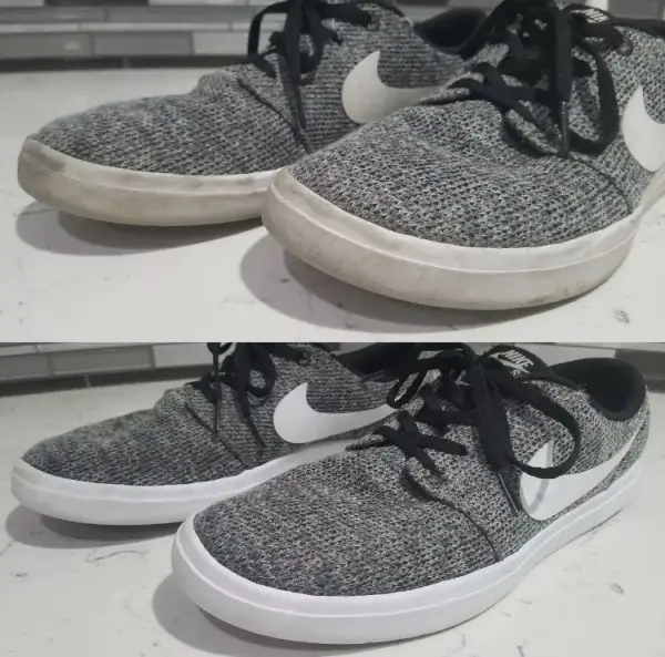 We all know the dirtiest part of a sneaker is the part that touches the ground. with A few sprays of White Lightning and some light agitation with an old toothbrush it can have your shoe soles looking new again.